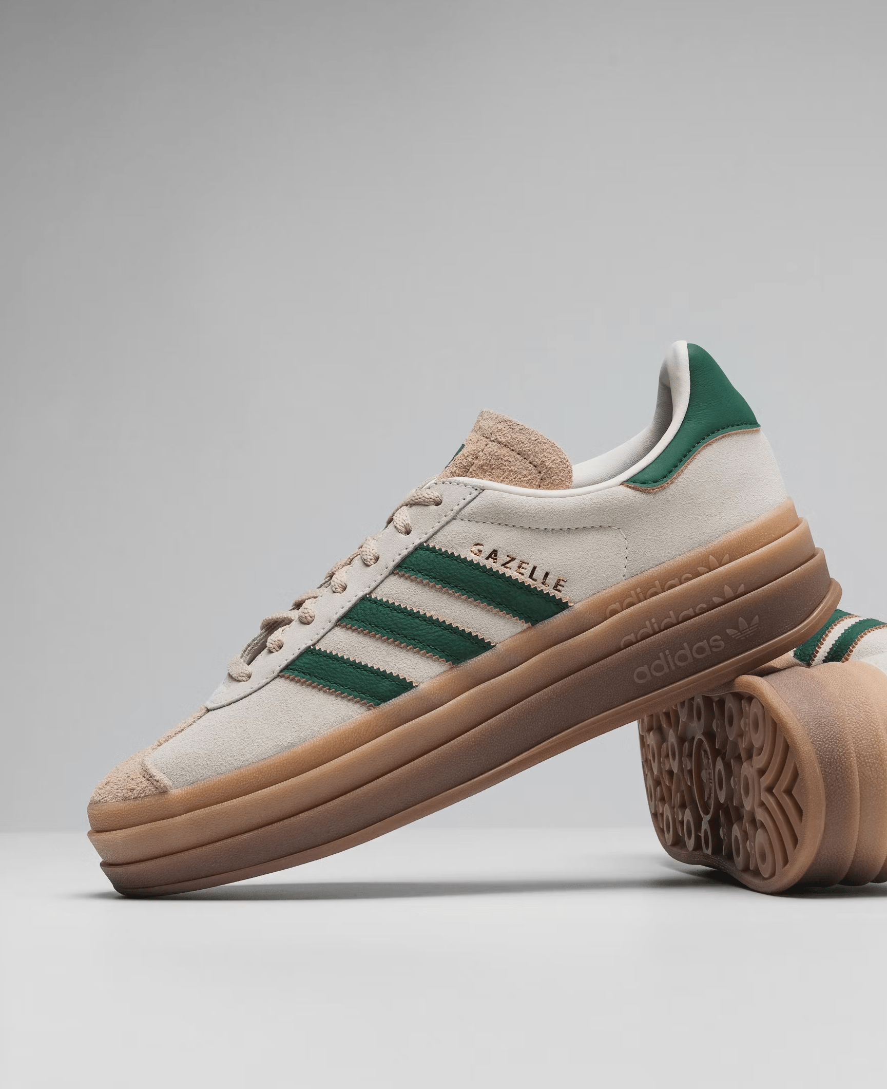 The Adidas Gazelle Bold reimagines a retro classic with a fresh, modern edge. Crafted with a premium suede upper in a neutral tone, these sneakers feature the iconic three-stripe design in deep green, accented with gold “Gazelle” branding for a touch of heritage. The standout feature is its chunky, stacked gum sole, offering both a trendy silhouette and superior comfort. A soft inner lining and durable rubber outsole ensure all-day ease, whether you’re hitting the streets or styling up a casual look. Perfect for sneaker enthusiasts who appreciate a fusion of vintage inspiration and contemporary streetwear.
